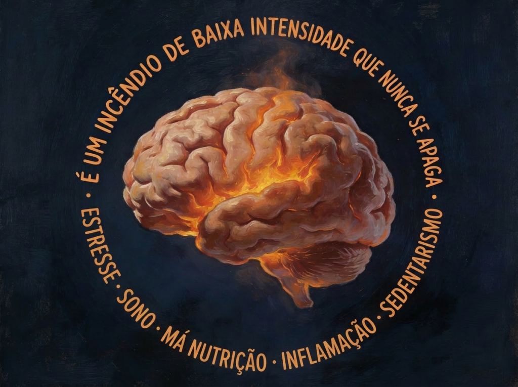 Estresse crônico gera inflamação. Sono ruim gera inflamação. Sedentarismo gera inflamação. Alimentação inadequada gera inflamação. Todos os caminhos levam ao mesmo destino: a neuroinflamação crônica de baixo grau.