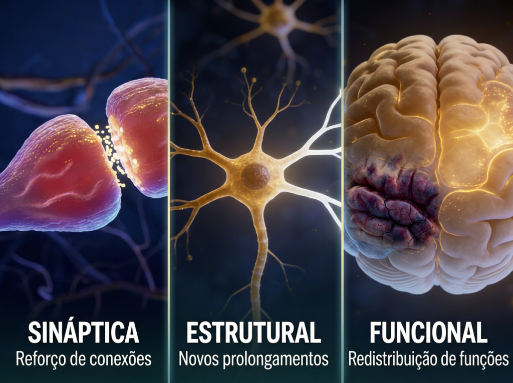 A plasticidade sináptica fortalece conexões existentes. A plasticidade estrutural vai além — cria estrutura nova.